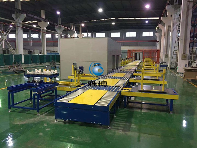 2.2.1輸送(sòng)線為非字型結構,產品傳輸主線采用無動力滾(gǔn)筒輸(shū)送方式,產品進出工位台采用鋼製萬向球轉出,工(gōng)位台(tái)采用無動力福來輪輸送,產品裝(zhuāng)配在工位台上完成,裝配完(wán)成後由無動力滾筒輸送(sòng)至下一工位裝配。