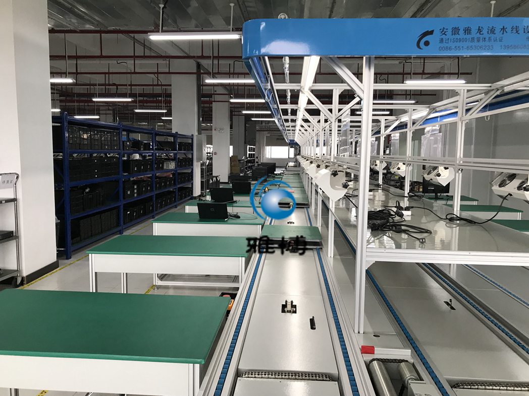 線體每工位(wèi)總體(tǐ)設有LED燈、工藝看板、離子風機支(zhī)架、擱板台、防靜電工(gōng)作台、網(wǎng)絡插座、兩位TCL插座和漏電帶多功能電源插(chā)座、抽屜帶鎖及防靜電(diàn)手環接地插座等(děng),線體需接地處理。